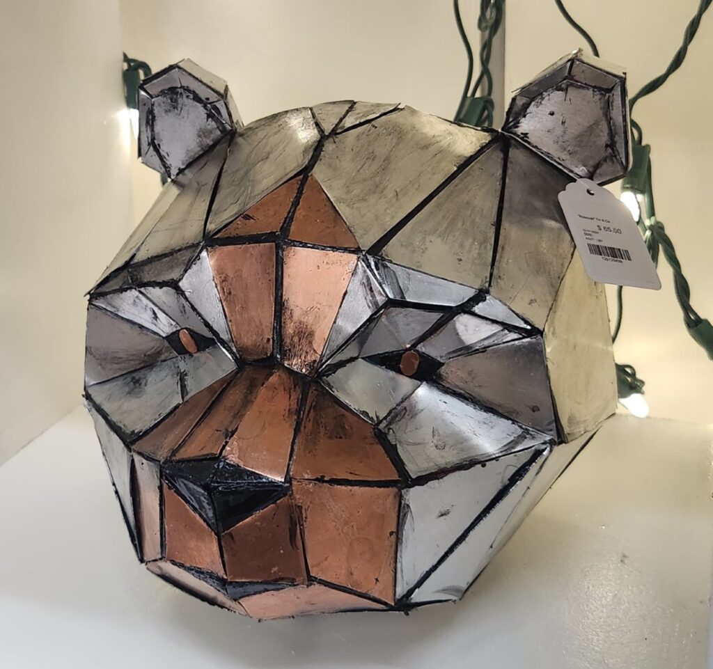 Pieces of tin and copper were used to form this bear head.